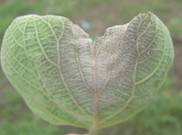 該病害不常發(fā)生。20~26℃的持續(xù)偏低溫,連陰雨天氣發(fā)病,汁液傳播。主要是通過(guò)刺吸式口器的蟲子進(jìn)行傳播,如葉蟬、蚧殼蟲。