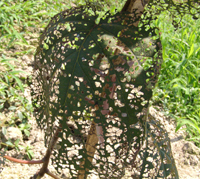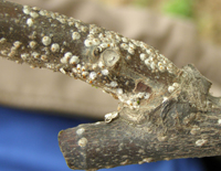屬于同翅目,體外有蠟質(zhì)介殼。卵通常埋在蠟絲塊中、雌體下或雌蟲分泌的介殼下。 介殼蟲繁殖能力強(qiáng),一年發(fā)生多代。卵孵化為若蟲,經(jīng)過(guò)短時(shí)間爬行,營(yíng)固定生活,即形成介殼。介殼蟲抗藥能力強(qiáng),一般藥劑難以進(jìn)入體內(nèi),防治比較困難。