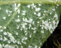 以成蟲、若蟲群集在葉背、嫩梢上刺吸危害,棲息時(shí)頭翹起,有時(shí)可見(jiàn)數(shù)十頭群集在新梢上,排列成一條直線;引起被害植株發(fā)生煤污病或嫩梢萎縮,畸形等,嚴(yán)重影響植株的生長(zhǎng)和發(fā)育。