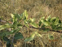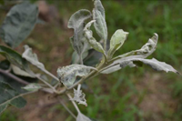 主要為害嫩枝、葉片、新梢,也為害花及幼果。病部滿布白粉是此病的主要特征。幼苗被害,葉片及嫩莖上產(chǎn)生灰白色斑塊,發(fā)病嚴重時葉片萎縮、卷曲、變褐、枯死,后期病部長出密集的小黑點。大樹被害,芽干癟尖瘦,春季發(fā)芽晚,節(jié)間短,病葉狹長,質硬而脆,葉緣上卷,直立不伸展,新梢滿覆白粉。生長期健葉被害則凹凸不平,葉綠素濃淡不勻,病葉皺縮扭曲,甚至枯死。