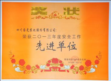 公司榮獲簡陽市經(jīng)信系統(tǒng)2013年度安全工作先進(jìn)單位